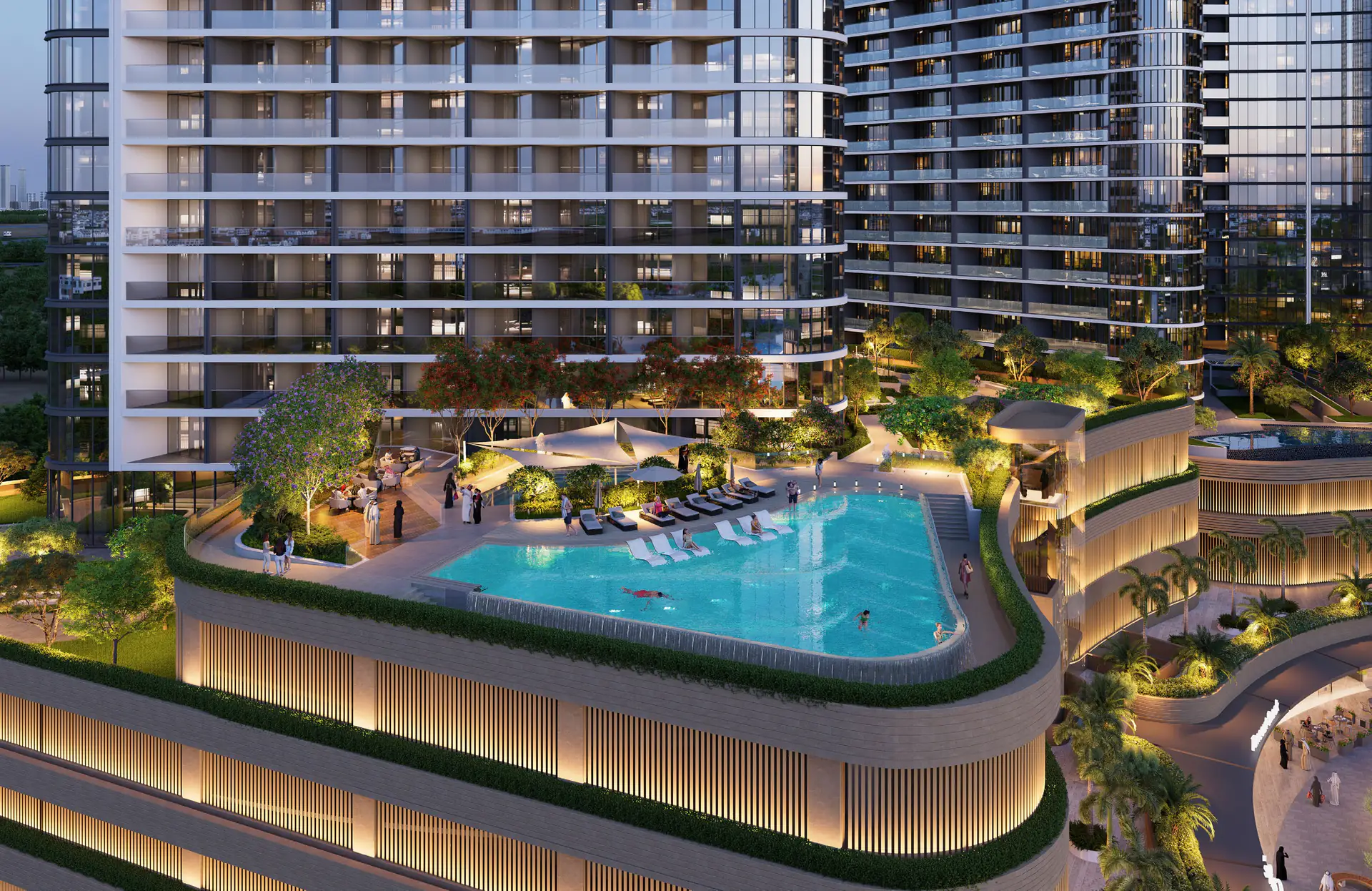 Residents benefit from a wide array of lifestyle-focused amenities, including an infinity pool, indoor and outdoor fitness zones, a yoga and meditation center, entertainment lounges, dedicated kids’ spaces, and beautifully landscaped outdoor areas that support wellness, recreation, and community living.